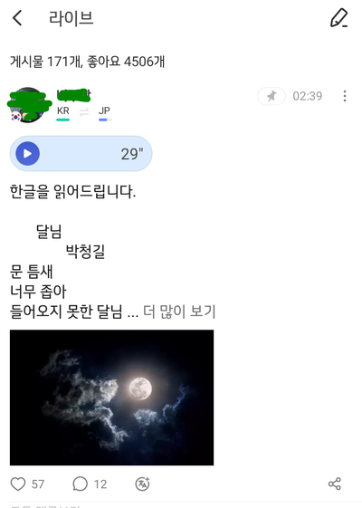 드라마나 유명한 노래 가사를 읽어주기도 했다.